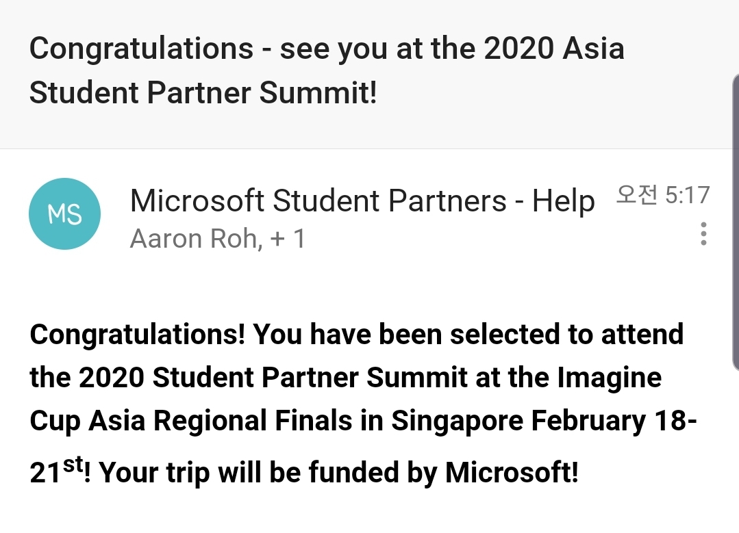 Summit 활동, 이매진컵 아시아 결선과 MS Ignite:The tour 싱가폴 참석을 위해 모든 경비를 MS의 후원으로 받게된다!! 😀