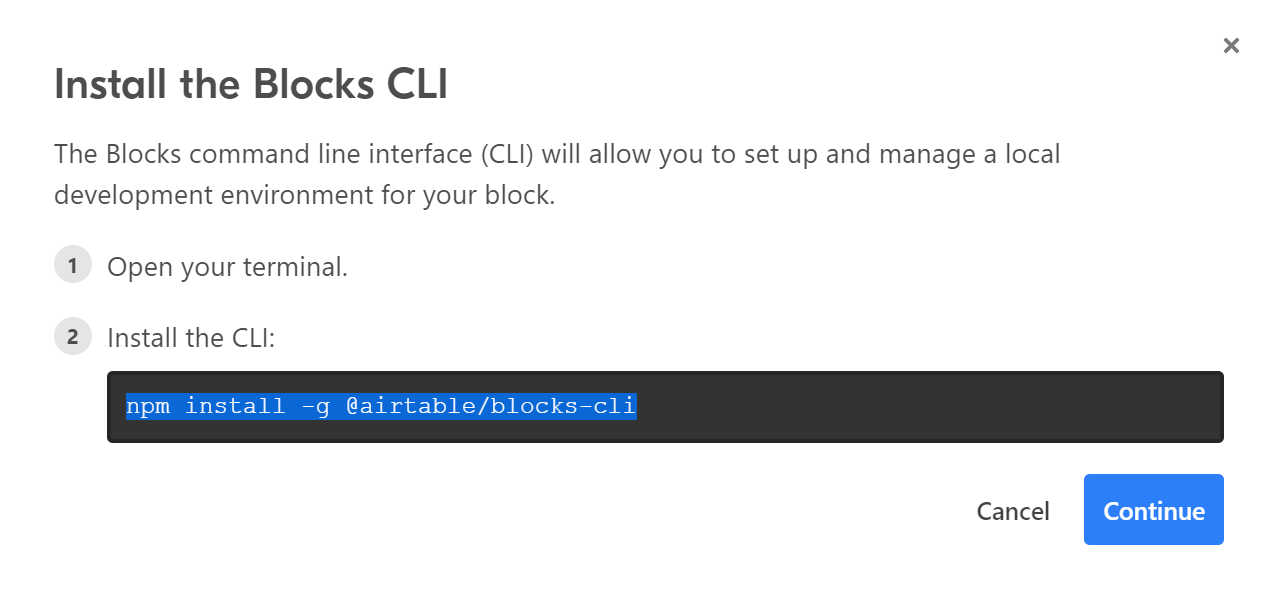 my-blocks [master●] % sudo npm install -g @airtable/blocks-cli