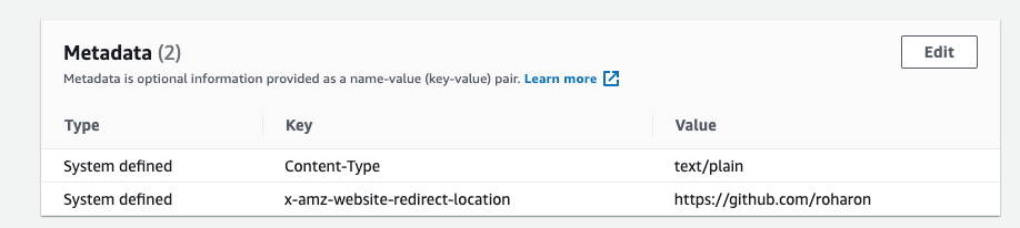 우린 오브젝트에서 redirect_location 메타데이터만 저장하고 사용할 것이기에 Body의 값은 빈 바이트인 b'' 로 두었다
