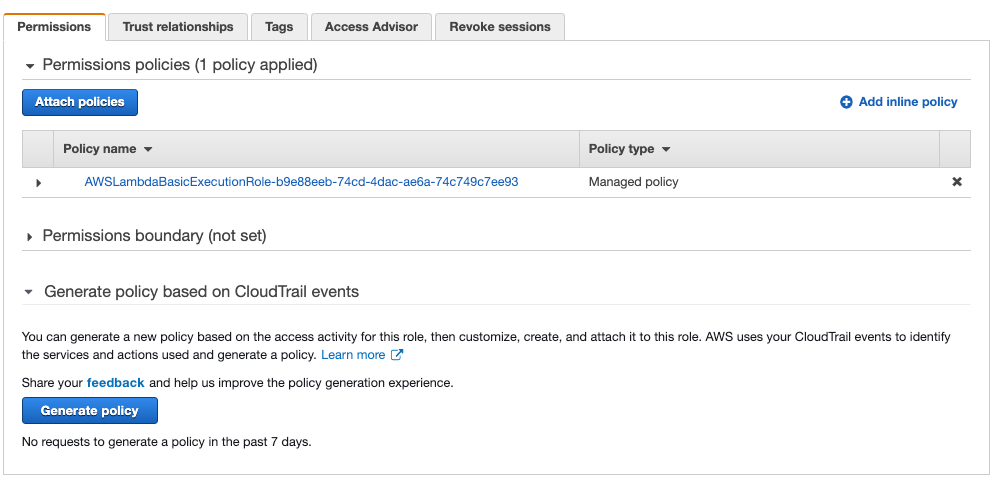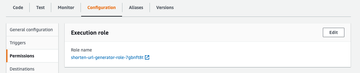 따라서 Configuration의 Permission으로 들어가 Execution role의 권한을 수정해본다