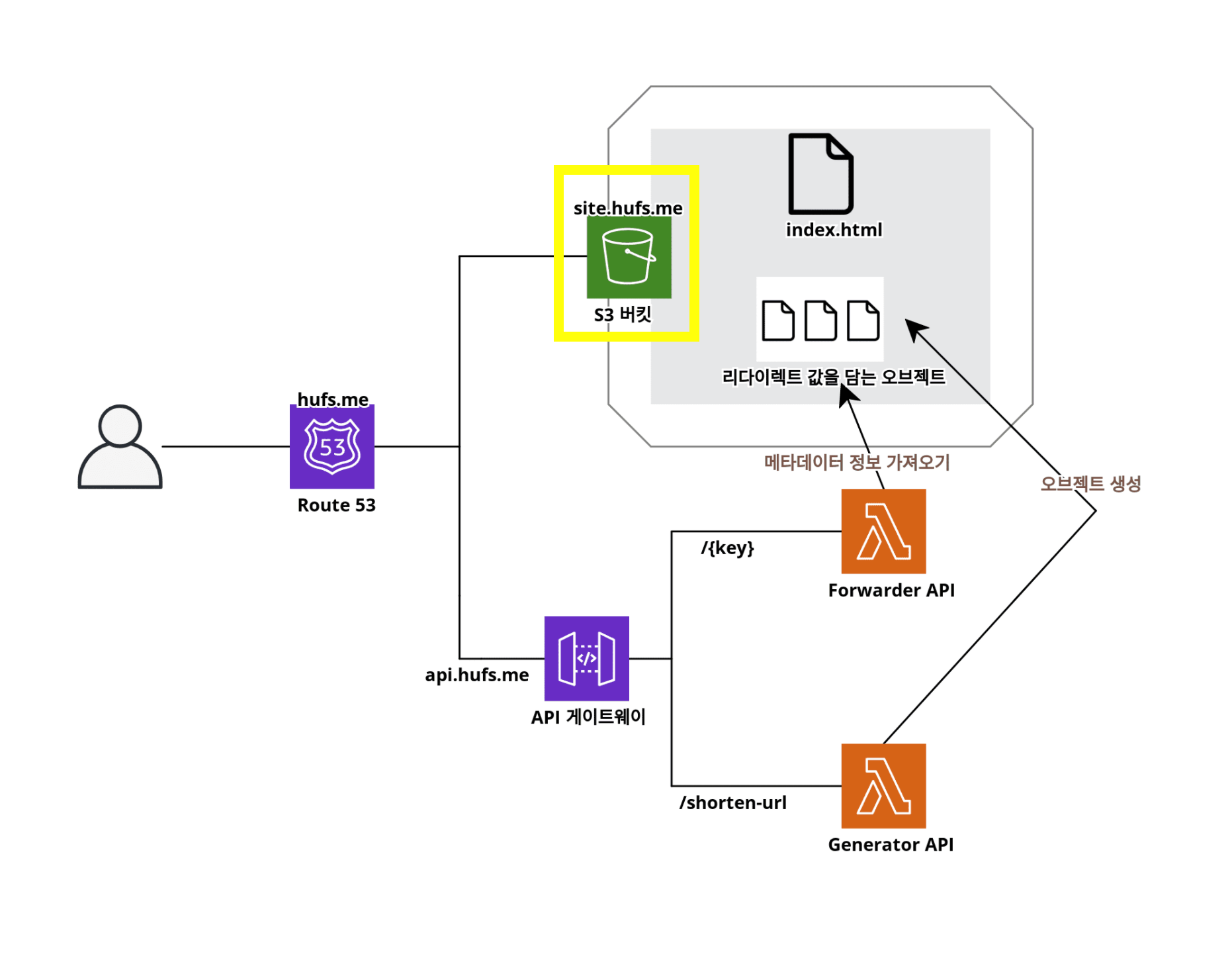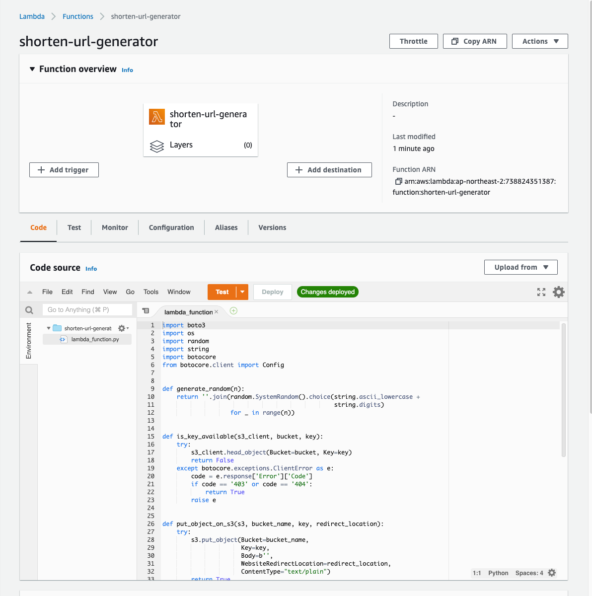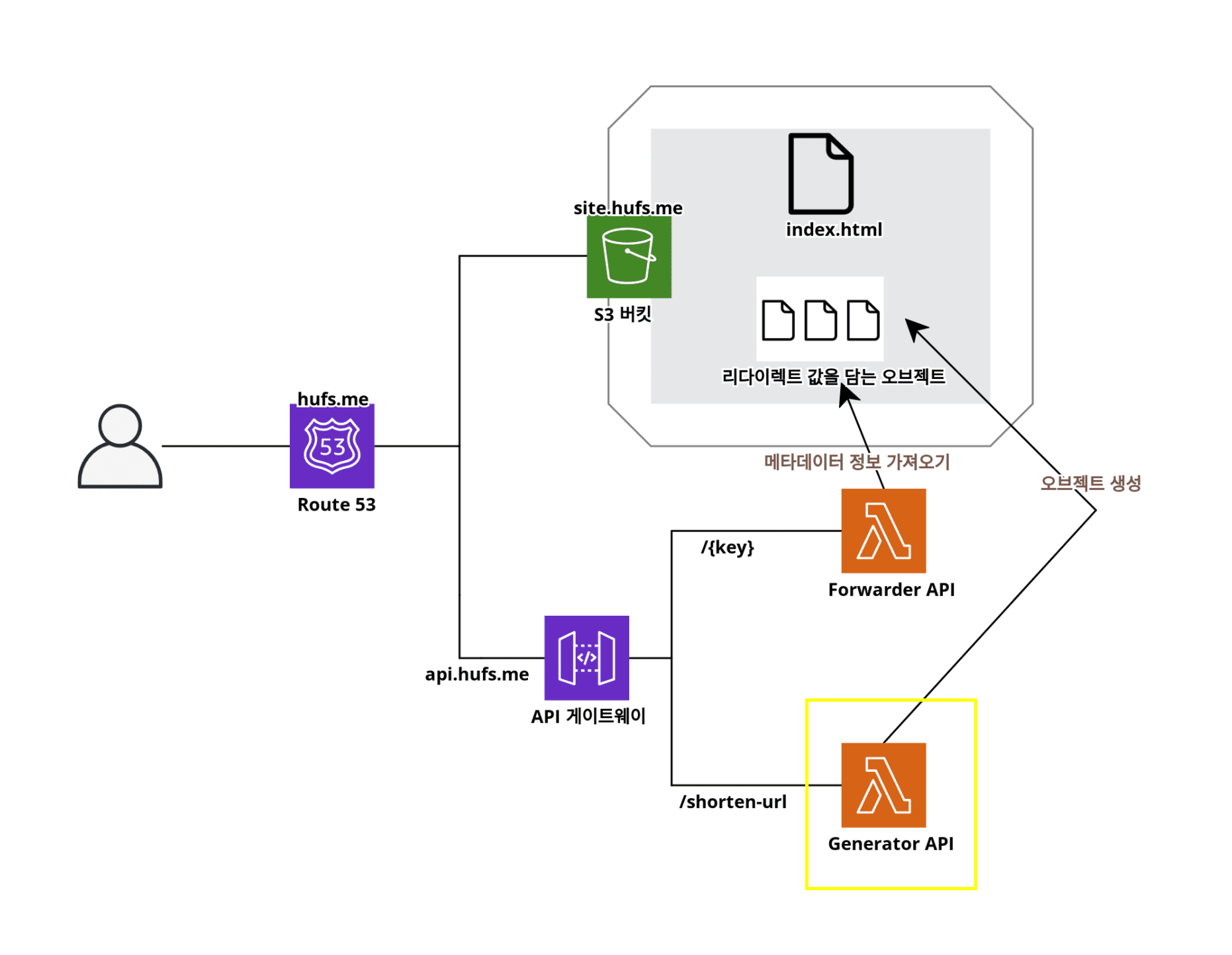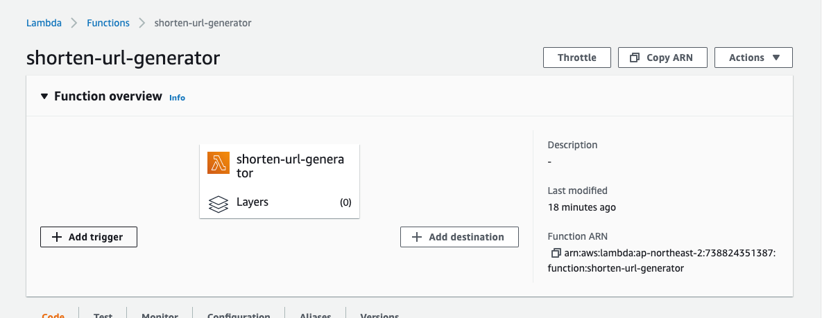 단축 URL 서비스 아키텍처에서 두개의 람다 중 노란 박스 부분의 단축 URL을 생성하는 람다 함수를 만드는 차례다.