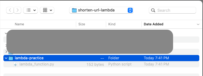 기존에 shorten-url-lambda 로 폴더를 선택하였기에 이 폴더를 선택하였다.