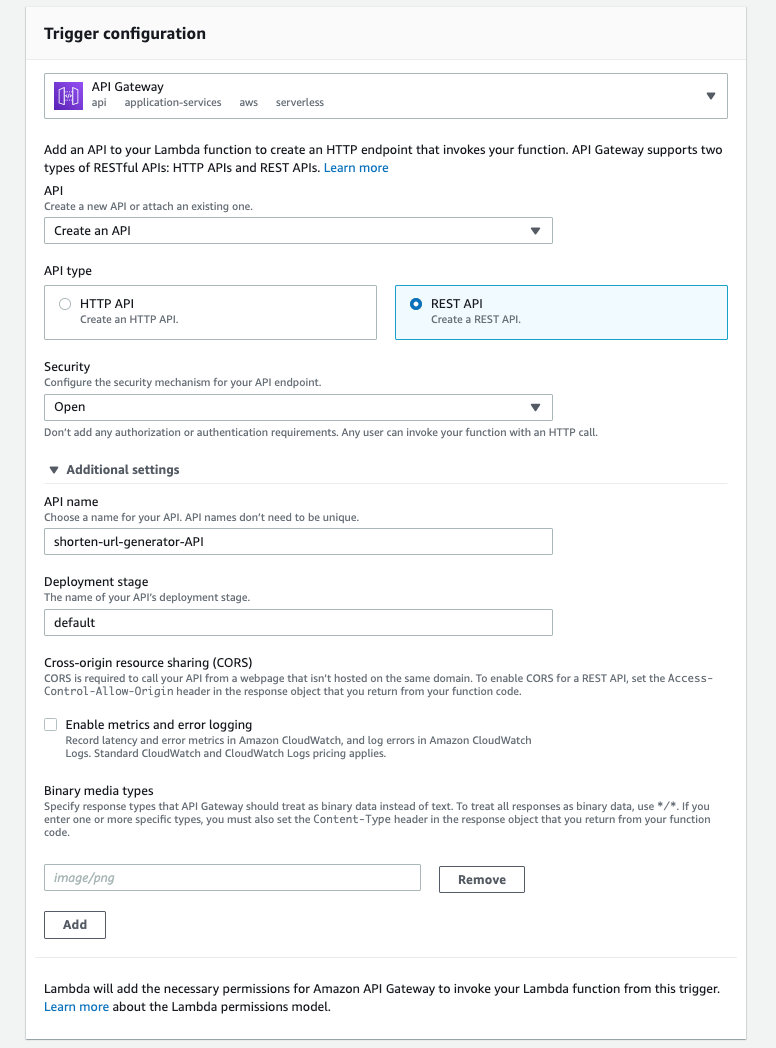 트리거로 API Gateway를 선택하고 Create an API를 선택해 새로운 Gateway를 생성한다