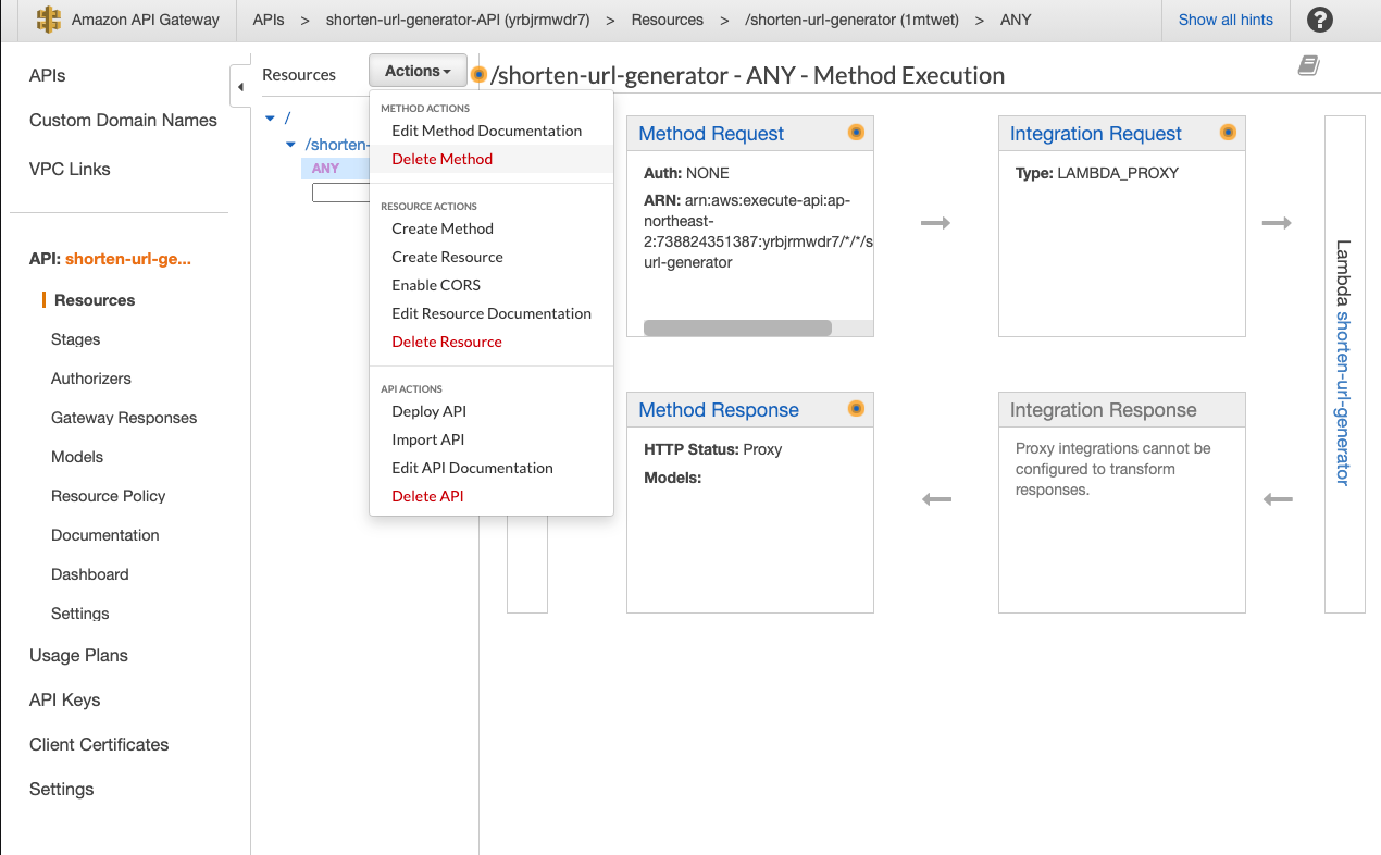 API Gateway가 생성이 되었다.