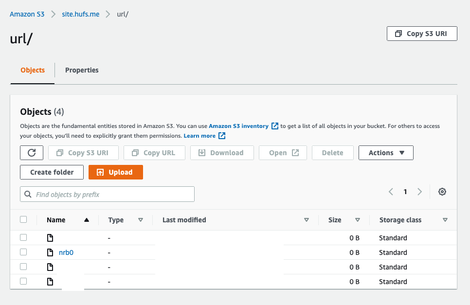 성공적으로 생성이 되었고 S3 버켓에 들어가서 nrb0이 S3에 오브젝트로 저장되어 있음까지 확인해 볼 수 있다